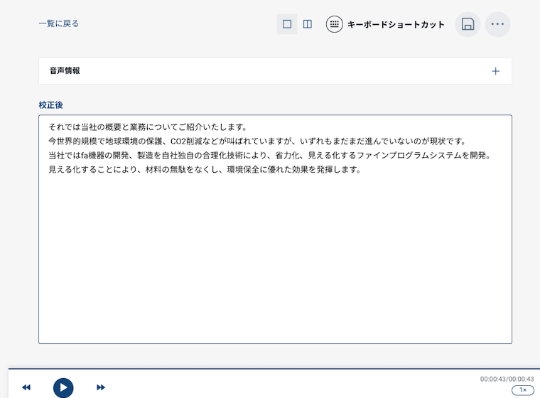 洗練された編集画面でいつでも自由に文字起こしデータの編集・校正が可能。