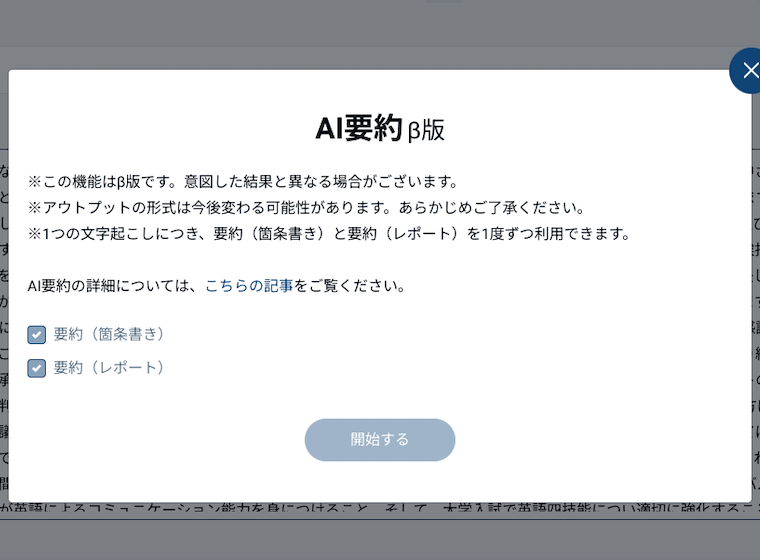 AI要約(β版)で文字起こしデータを簡単にレポート形式へ。