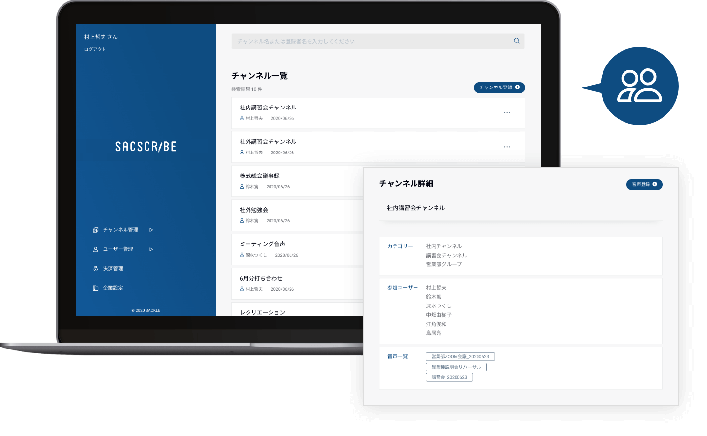 これまで個々で管理していた音声データを全てSACSCRIBEに集約可能。全ての音声データ・文字データをプラットフォーム上で管理し、優れた検索機能ですぐに抽出可能。また、長期保管も可能です。